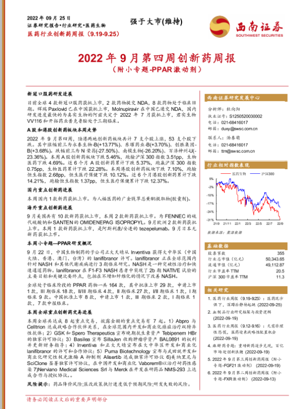 【西南证券】【20220925】2022年9月第四周创新药周报-23页 行业研究
