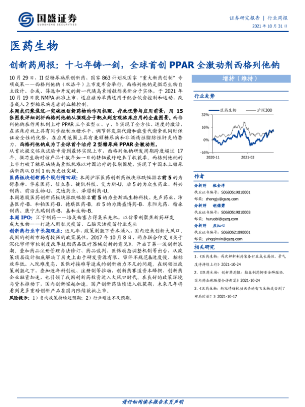 【国盛证券】【20211031】医药生物创新药周报:十七年铸一剑,全球首创PPAR全激动剂西格列他钠-29页 行业研究