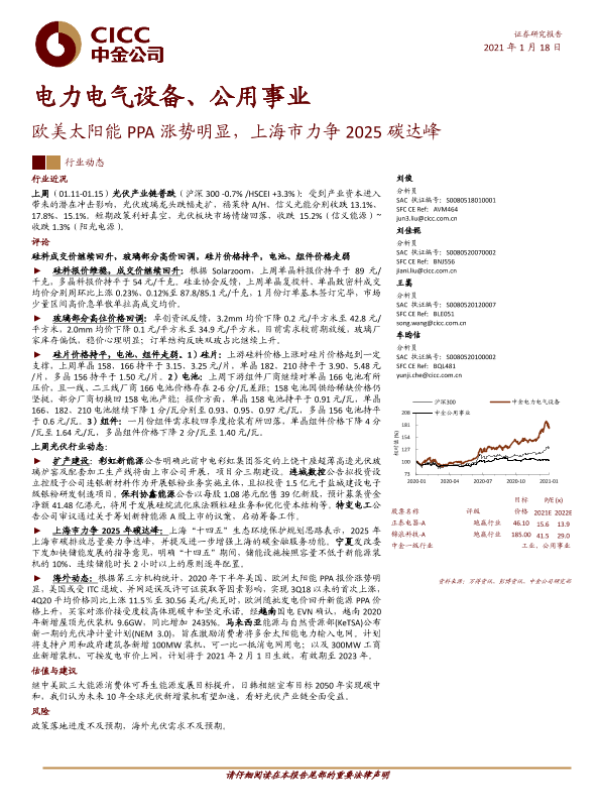 【中金公司】【20210118】欧美太阳能PPA涨势明显,上海市力争2025碳达峰-8页 行业研究