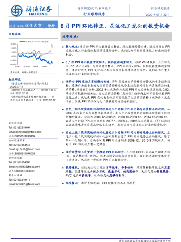 【海通证券】【20200722】20200722-海通证券-石油化工行业跟踪报告:6月PPI环比转正,关注化工龙头的投资机会-4页 行业研究