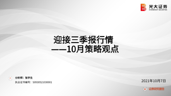 【光大证券】【20211007】10月策略观点:迎接三季报行情-50页 行业研究