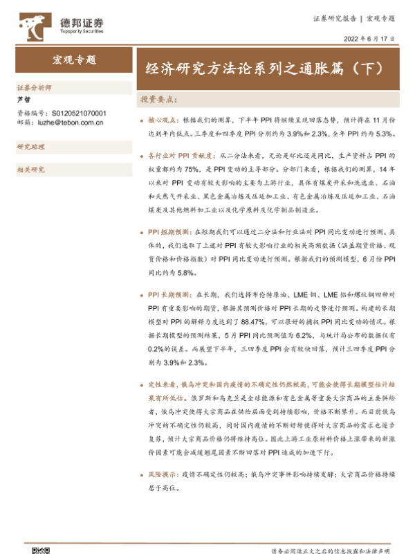 【德邦证券】【20220617】宏观专题:经济研究方法论系列之通胀篇(下)-15页 行业研究
