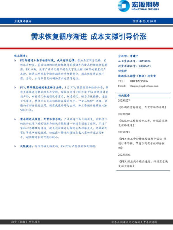 【宏源期货】【20230309】月度策略报告:需求恢复循序渐进,成本支撑引导价涨-16页 行业研究