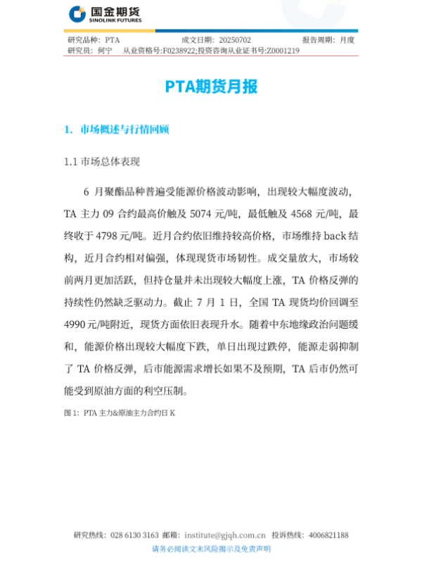 【国金期货】【20250702】PTA期货月报-6页 证券期货研究报告