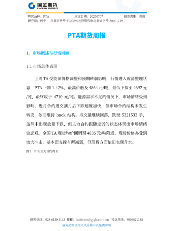 【国金期货】【20250707】PTA期货周报-5页 证券期货研究报告