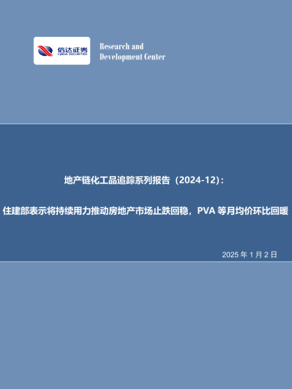 【信达证券】【20250102】地产链化工品追踪系列报告(2024-12):住建部表示将持续用力推动房地产市场止跌回稳,PVA等月均价环比回暖-26页 行业研究