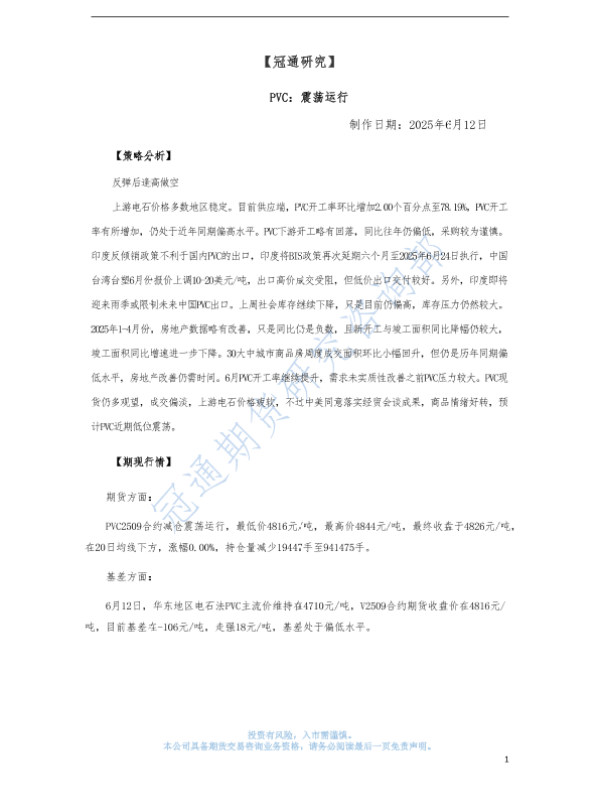 【冠通期货】【20250612】PVC:震荡运行-3页 证券期货研究报告