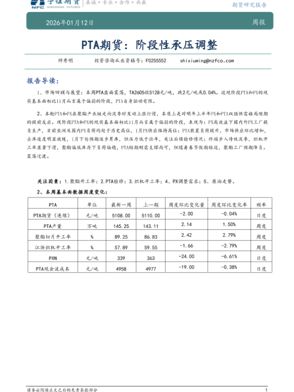 【宁证期货有限公司】【202601】PTA期货:阶段性承压调整-7页 证券期货研究报告