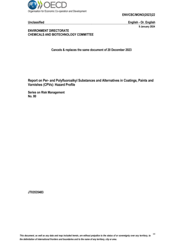 【OECD】【20231220】Report on Per- and Polyfluoroalkyl Substances and Alternatives in Coatings, Paints and Varnishes(CPVs) Hazard Profile-78页 技术文档