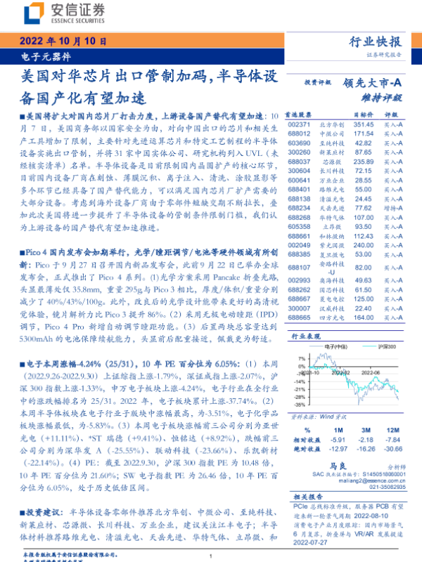 【安信证券】【20221010】美国对华芯片出口管制加码,半导体设备国产化有望加速-16页 行业研究