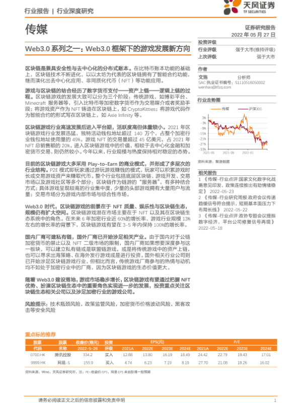 【天风证券】【20220527】Web3.0框架下的游戏发展新方向-22页 行业研究