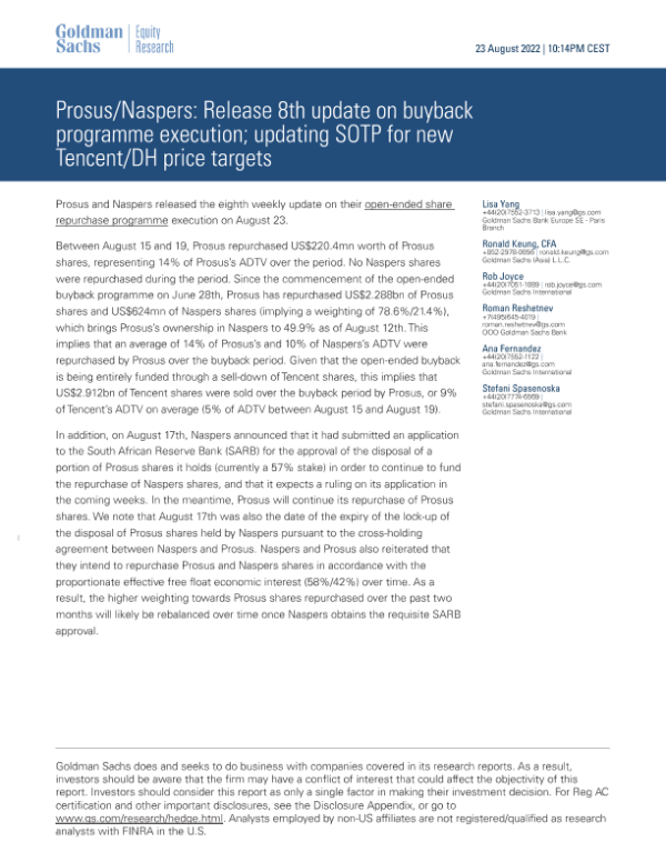 【Goldman Sachs】【20220823】yback programme execution; updating SOTP for new Tencent_DH price targets-13页 行业研究