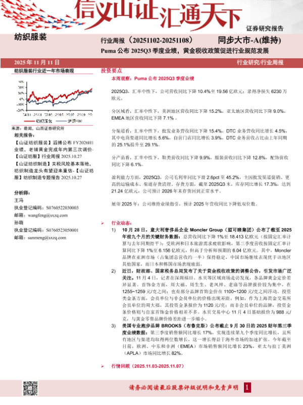 【山西证券】【202511】纺织服装 行业周报(20251102-20251108)同步大市-A(维持)-19页 证券期货研究报告