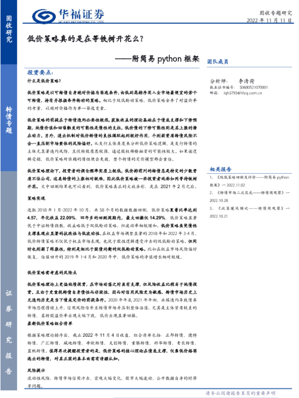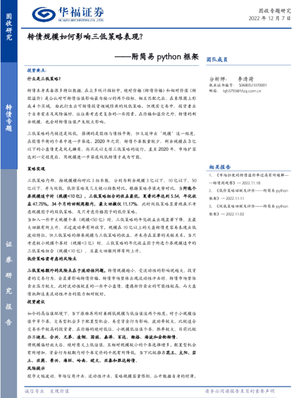 【华福证券】【20221207】转债规模如何影响三低策略表现?-17页 行业研究