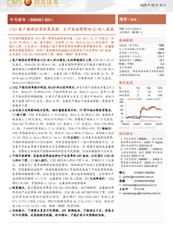 【海通证券】【20250510】中芯国际25Q1客户提前拉货效果显现,生产波动等影响Q2收入表现-11页 公司研究