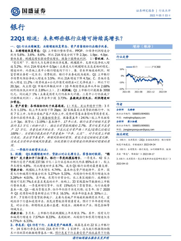 【国盛证券】【20220503】22Q1综述:未来哪些银行业绩可持续高增长?-12页 行业研究