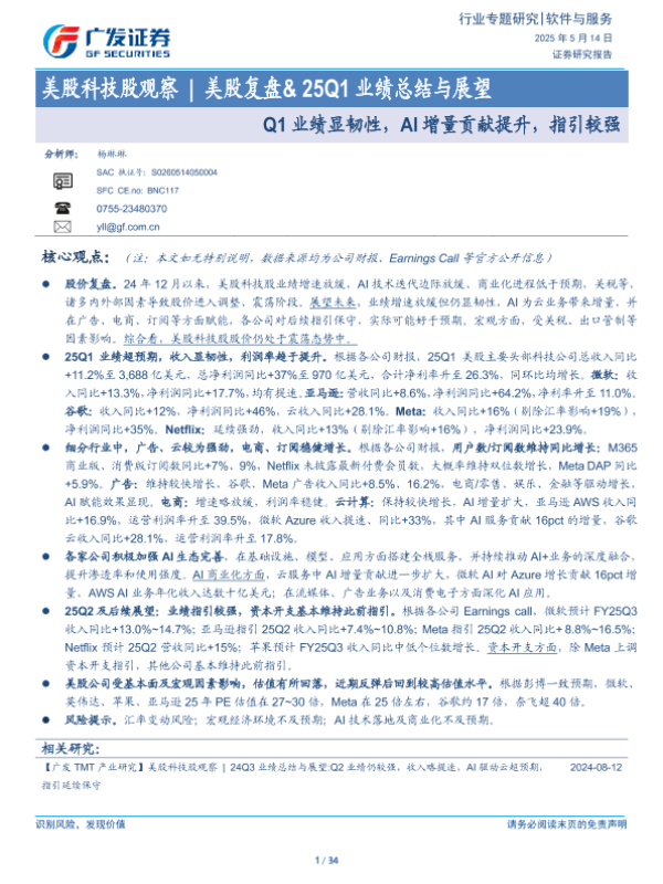 【广发证券】【20250514】软件与服务行业美股科技股观察 | 美股复盘&25Q1业绩总结与展望-34页 证券期货研究报告