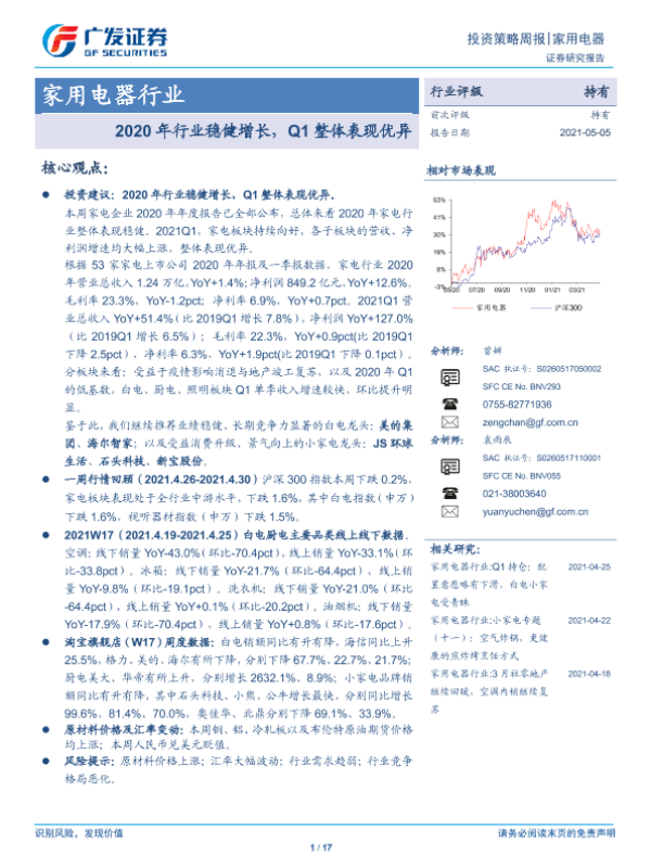 【广发证券】【20210505】家用电器行业:2020年行业稳健增长,Q1整体表现优异-17页 行业研究