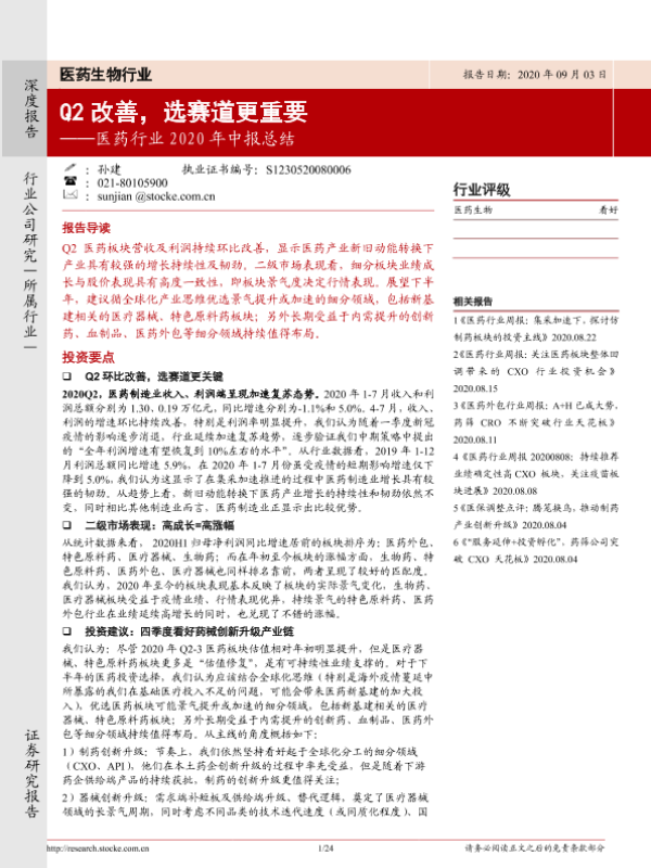 【浙商证券】【20200903】医药行业2020年中报总结:Q2改善,选赛道更重要-24页 行业研究