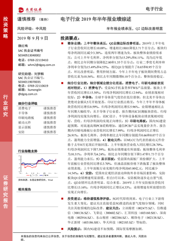 【东莞证券】【20190909】电子行业2019年半年报业绩综述:半年报业绩承压,Q2边际改善明显-25页 行业研究