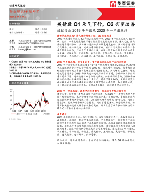 【华泰证券】【20200505】通信行业2019年年报及2020年一季报总结:疫情致Q1景气下行,Q2有望改善-11页 行业研究