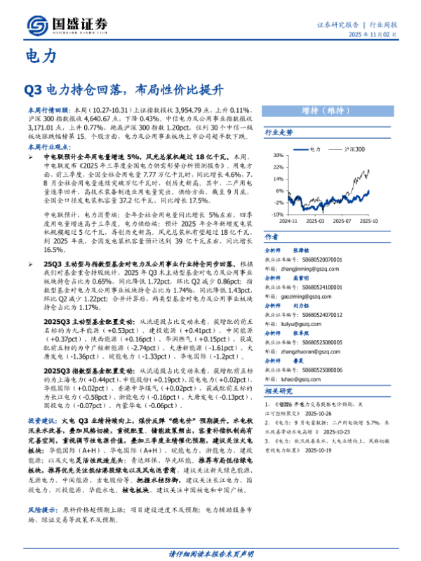 【国盛证券】【202511】Q3电力持仓回落,布局性价比提升-19页 证券期货研究报告