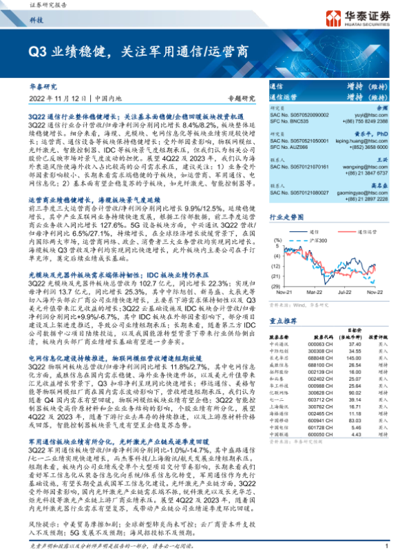 【华泰证券】【20221112】20221112-华泰证券-科技专题研究:Q3业绩稳健,关注军用通信 运营商-18页 行业研究