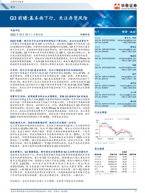 【华泰证券】【20221019】20221019-华泰证券-电子行业Q3前瞻:基本面下行,关注存货风险-10页 行业研究
