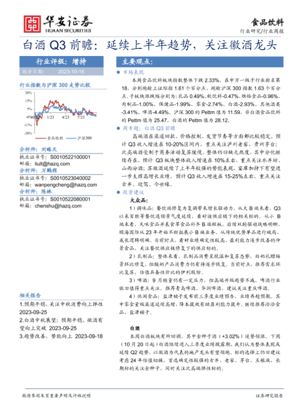 【华安证券】【20231016】20231016-华安证券-白酒Q3前瞻:延续上半年趋势,关注徽酒龙头-19页 行业研究