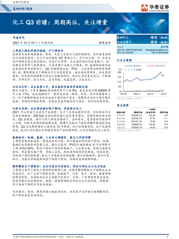 【华泰证券】【20211019】化工Q3前瞻:周期高位,关注增量-7页 行业研究