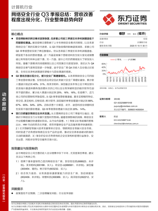 【东方证券】【20201030】计算机行业:网络安全行业Q3季报总结:营收改善程度出现分化,行业整体趋势向好-4页 行业研究