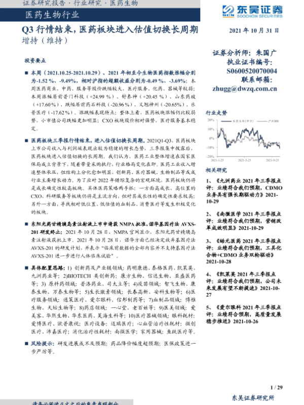 【东吴证券】【20211031】医药生物行业:Q3行情结束,医药板块进入估值切换长周期-29页 行业研究