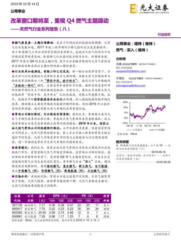 【光大证券】【20191014】天然气行业系列报告(八):改革窗口期将至,重视Q4燃气主题躁动-10页 行业研究
