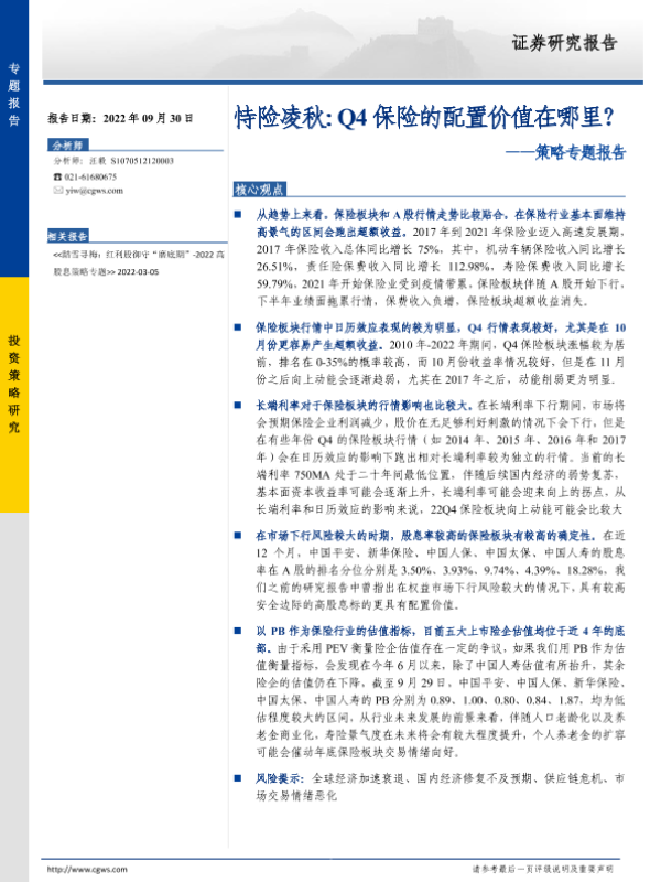 【长城证券】【20220930】策略专题报告:恃险凌秋,Q4保险的配置价值在哪里?-17页 行业研究
