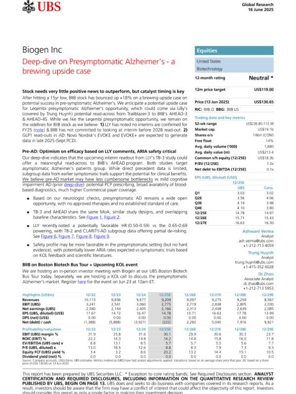 【UBS Equities】【20250616】Deep-dive on Presymptomatic Alzheimer's - a brewing upside case-22页 公司研究