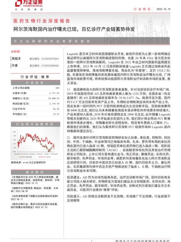 【方正证券】【20231019】医药生物行业深度报告:阿尔茨海默国内治疗曙光已现,百亿诊疗产业链蓄势待发-15页 行业研究