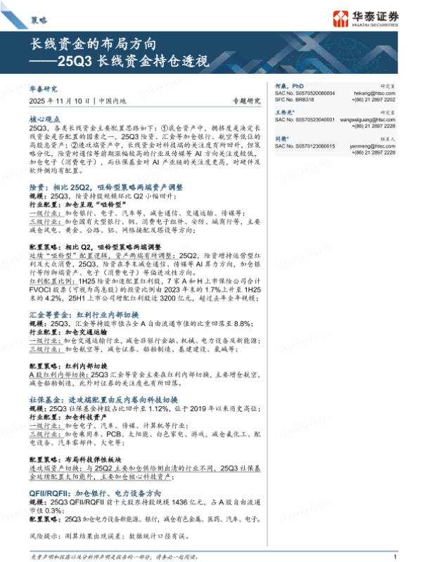 【华泰证券】【202511】策略专题研究:长线资金的布局方向——25Q3长线资金持仓透视-16页 证券期货研究报告