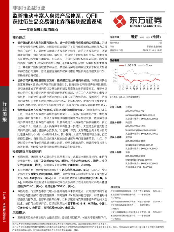 【东方证券】【20211018】监管推动丰富人身险产品体系,QFII获批衍生品交易强化券商板块配置逻辑-10页 行业研究