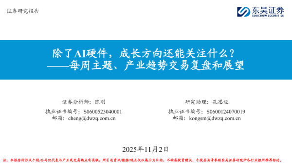 【东吴证券】【202511】除了AI硬件,成长方向还能关注什么?——每周主题、产业趋势交易复盘和展望-18页 证券期货研究报告