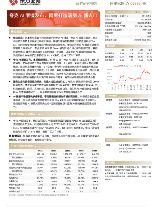 【东方证券】【202512】夸克AI眼镜发布,阿里打造端侧AI新入口-10页 证券期货研究报告