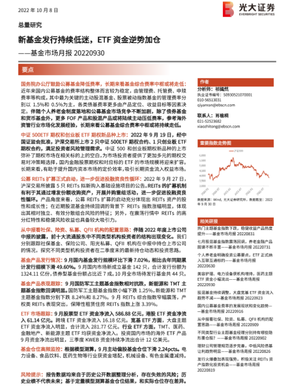 【光大证券】【20221008】基金市场月报:新基金发行持续低迷,ETF资金逆势加仓-25页 行业研究