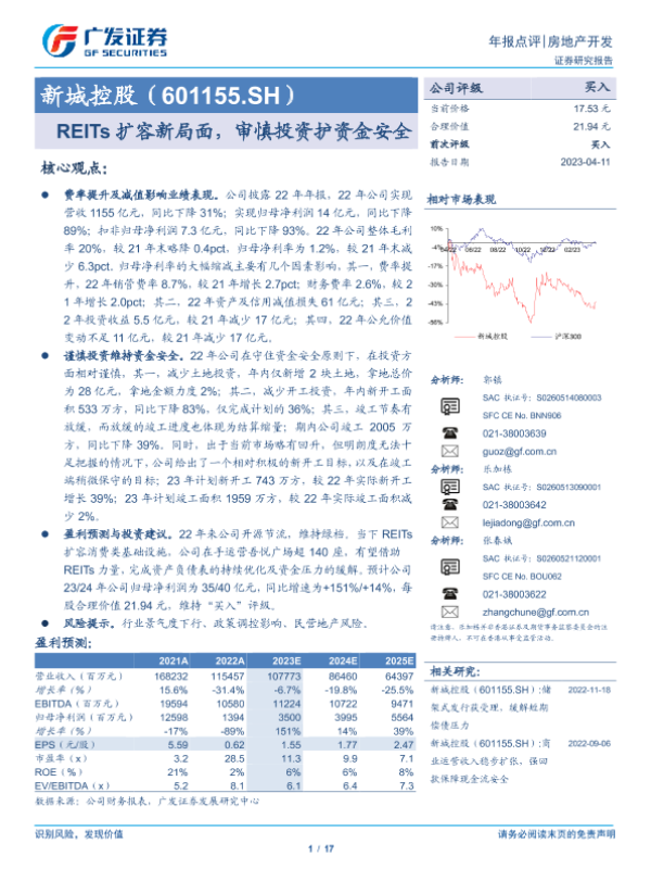 【广发证券】【20230411】新城控股(601155)REITs扩容新局面,审慎投资护资金安全-17页 行业研究