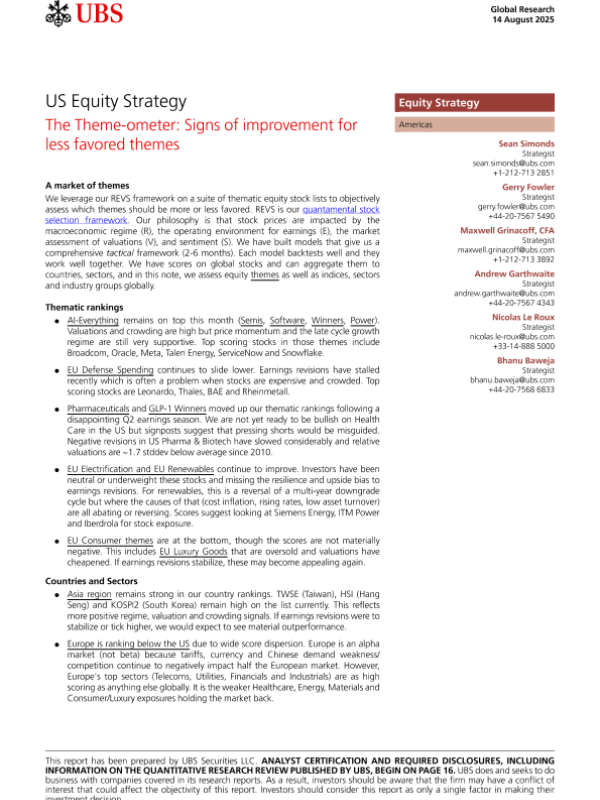 【UBS】【202508】US Equity Strategy The Theme-ometer Signs of improvement for less favored themes-19页 证券期货研究报告