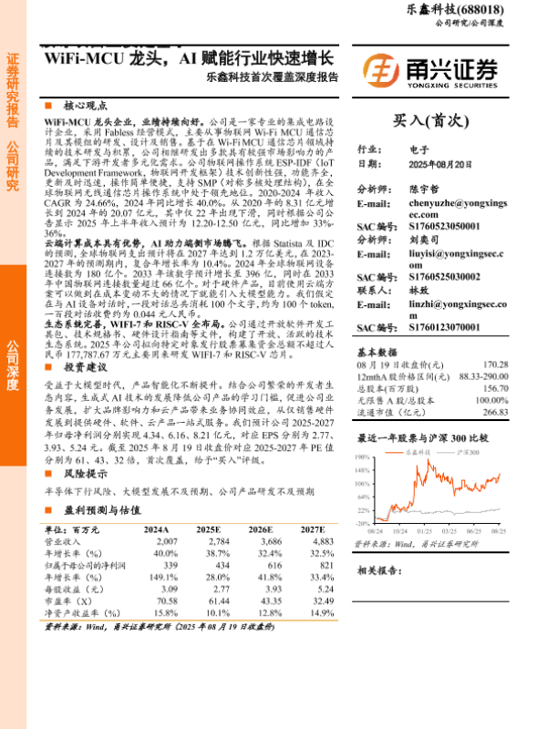 【乐鑫科技(688018)】【20250820】乐鑫科技-688018.SH-乐鑫科技首次覆盖深度报告:WiFi-MCU龙头,AI赋能行业快速增长-25页 证券期货研究报告