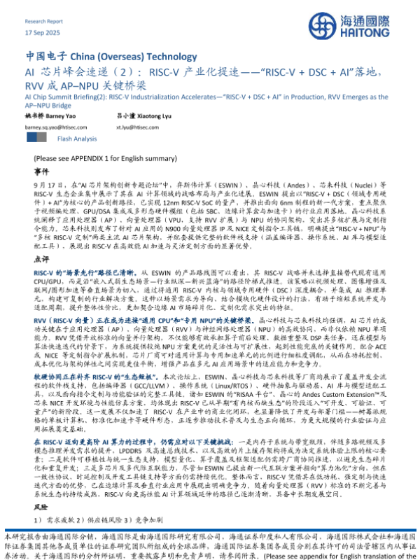 【海通国际】【202509】中国电子行业AI芯片峰会速递(2):RISC-V产业化提速——“RISC-V%2bDSC%2bAI”落地,RVV成AP-NPU关键桥梁-11页 证券期货研究报告