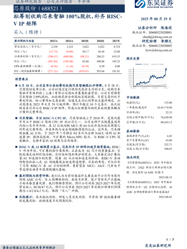 【东吴证券】【20250829】芯原股份-拟筹划收购芯来智融100%股权,补齐RISC-V IP矩阵-3页 证券期货研究报告