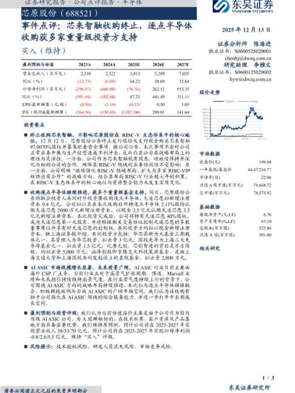 【东吴证券】【202512】事件点评:芯来智融收购终止,逐点半导体 收购获多家重量级投资方支持-3页 证券期货研究报告