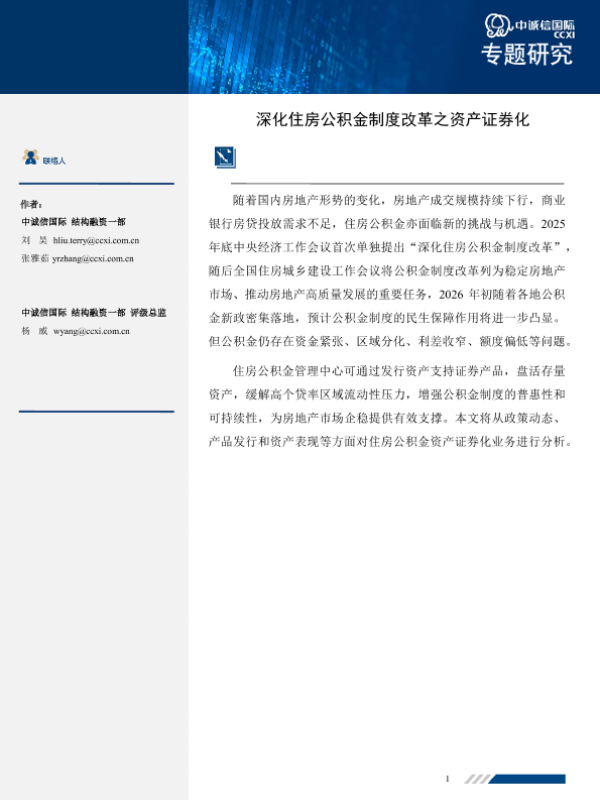 【中诚信国际】【2025】深化住房公积金制度改革之资产证券化-8页 行业研究
