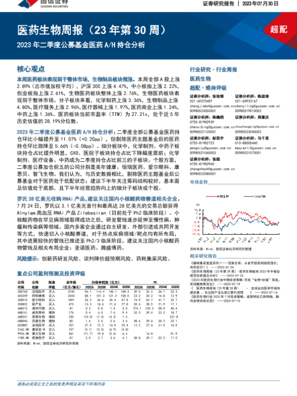 【国信证券】【20230730】2023年二季度公募基金医药A/H持仓分析-19页 行业研究