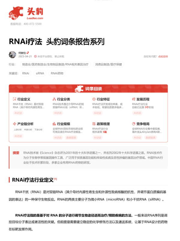【头豹研究院】【20230711】RNAi疗法 头豹词条报告系列-16页 行业研究
